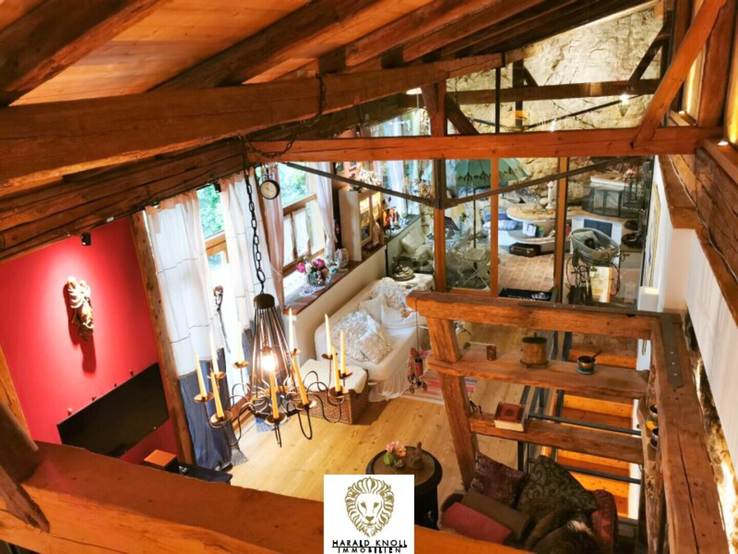 Zum Verkauf gelangt ein Hausanteil, (komplettes Erdgeschoß mit ca. 115 qm) sowie der Neuausbau (Tenne) aus dem Jahre 1996 mit ca. 135 qm Wohnfläche mit Terrassen und Gärten.