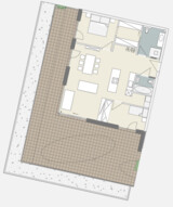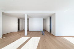 Diese exklusive Wohneinheit überzeugt durch eine ideal durchdachte Raumaufteilung und luxuriöser Ausstattung. Der Mittelpunkt ist der rund 47 m² große Wohn-, Ess- und Kochbereich, lichtdurchflutet und offen gestaltet – mit direktem Zugang über eine Schiebetür auf die umlaufende ca. 94 m² große Terrasse, die sich nach Nordosten und Süden öffnet.