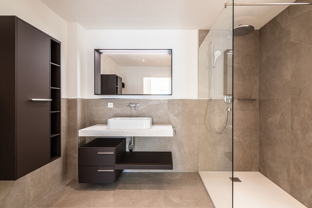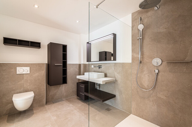 Hochwertige Sanitärobjekte mit modernen Badmöbeln ausgestattet.