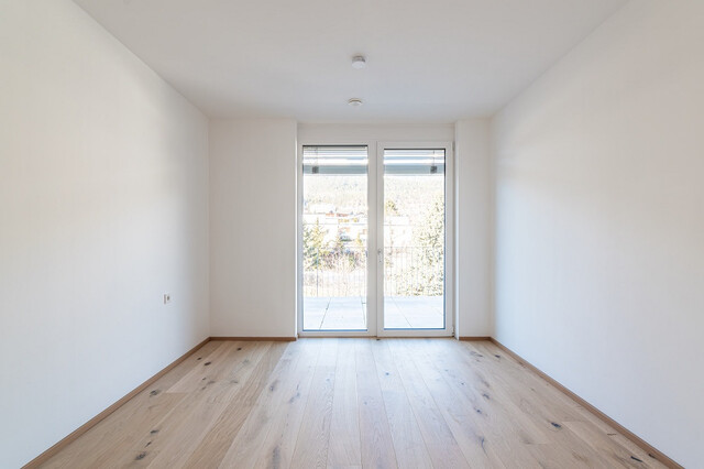 Das Elternschlafzimmer mit Schrankraum und direktem Zugang zum Badezimmer ist als privater Rückzugsort konzipiert – mit eigenem Terrassenausgang und herrlicher Aussicht. Ein weiteres Zimmer – ideal als Kinderzimmer, Gästezimmer oder Büro – bietet ebenfalls direkten Zugang zur Terrasse. Ein separates Gäste-WC mit eigenem Waschtisch und Badewanne unterstreicht die durchdachte Raumplanung und schafft zusätzlichen Komfort.