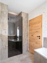 Für feine Behaglichkeit sorgen Echtholz-Parkettböden und Fußbodenheizung. Hochwertige Sanitärobjekte und moderne Fliesenkonzepte bestimmen den Standard der eleganten Bäder. Überhohe Räume und durchdachte Lichtkonzepte mit direkter und indirekter Beleuchtung verleihen allen Wohnungen Eleganz und Großzügigkeit. Modern, warm inszenierte Wandgestaltungen mit Spachteltechniken geben den großzügigen Räumen Behaglichkeit (können nach Kundenwunsch aber auch farblich adaptiert werden!).