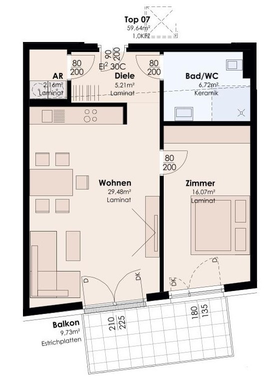 2-Zimmer-Wohnung im Dachgeschoss mit Balkon, Garagenabstellplatz AAP07, Euro 34.957,50