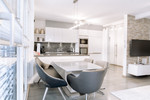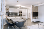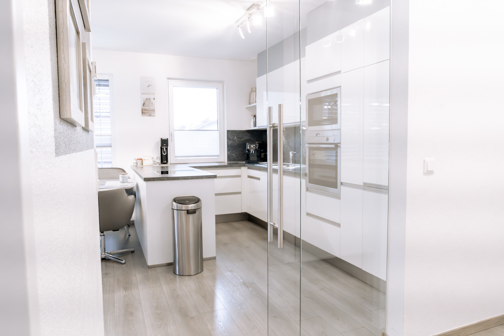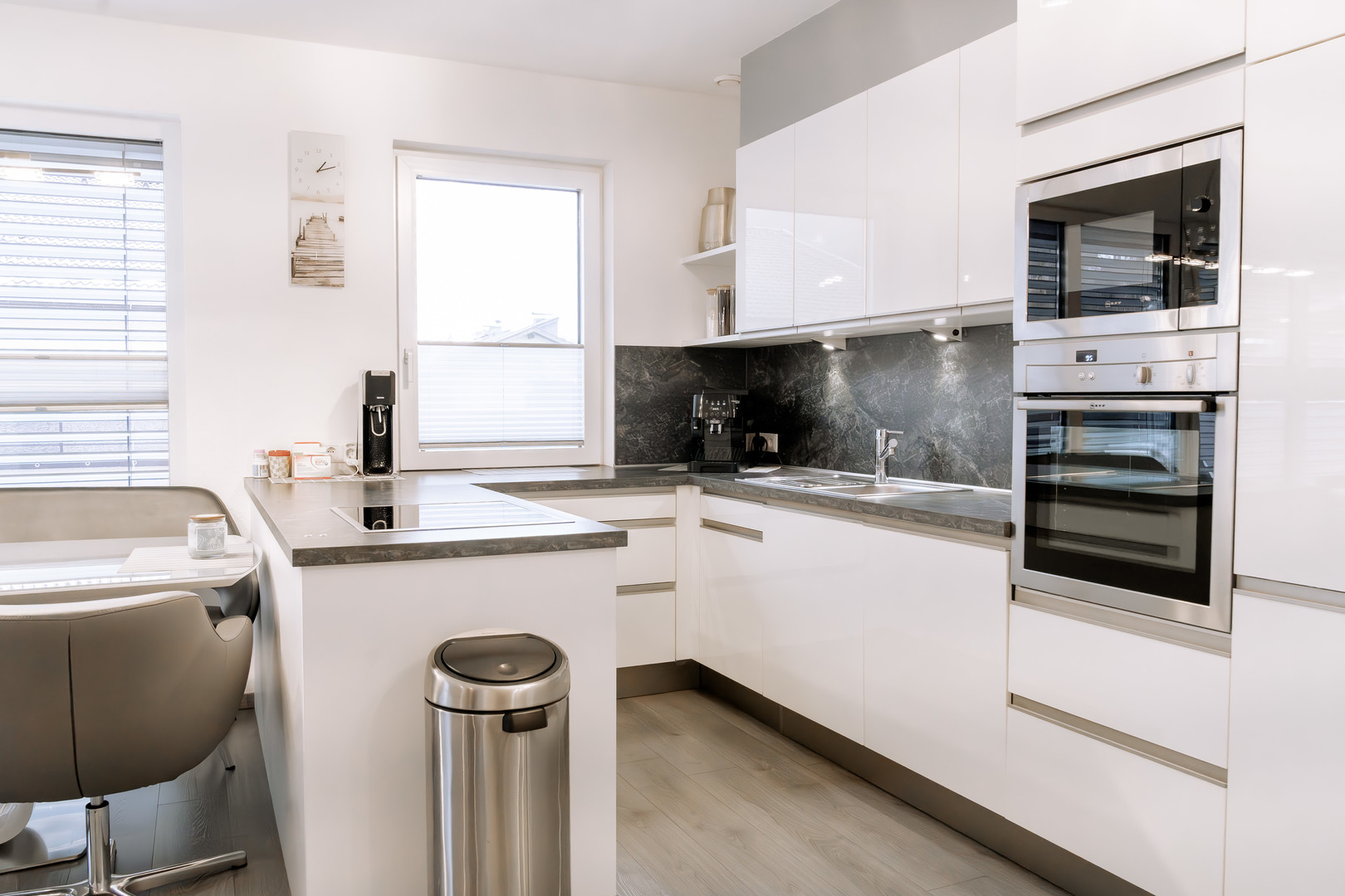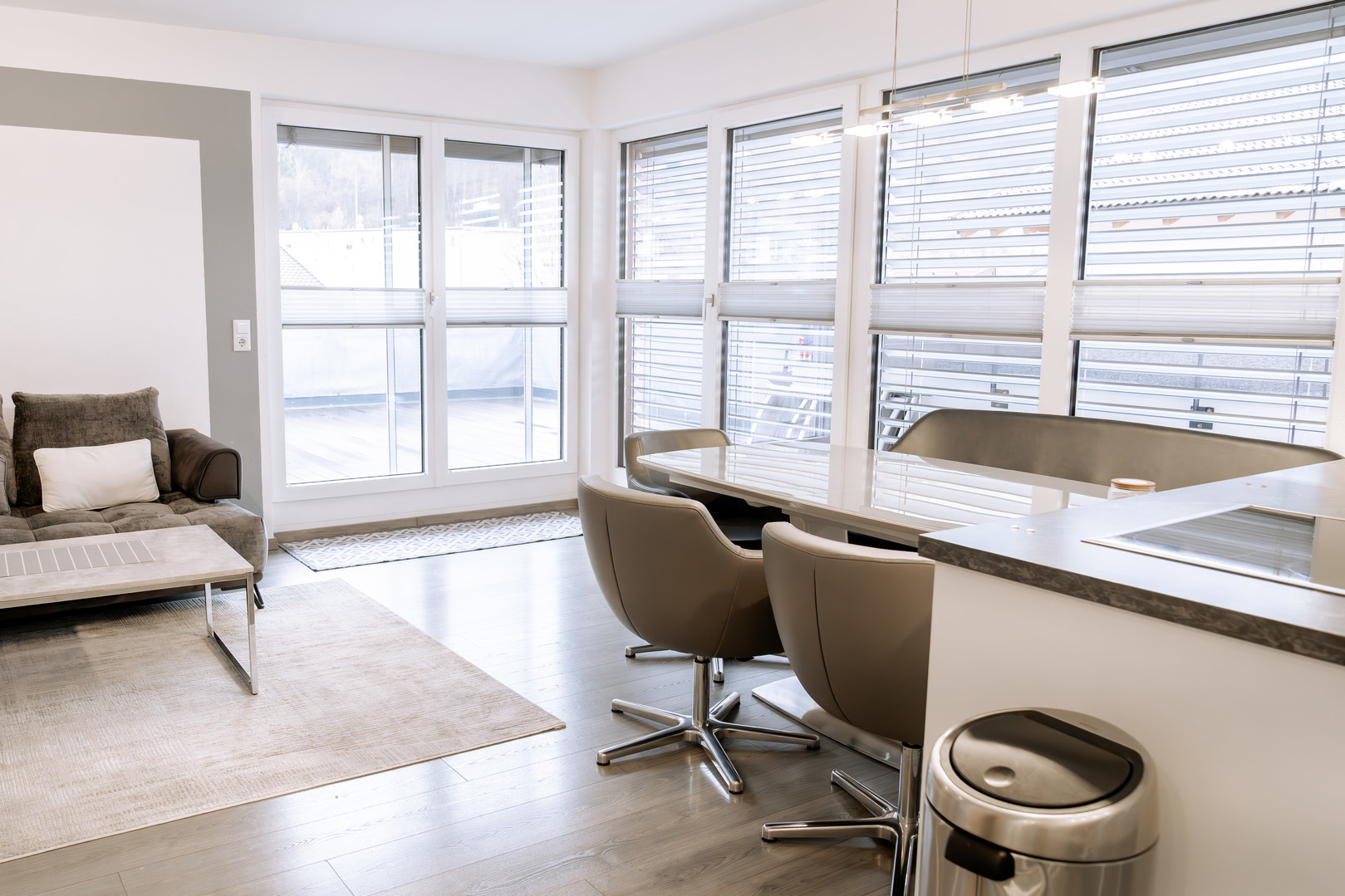 Der offene Wohn- und Essbereich ist das Herzstück dieser exklusiven Immobilie. Großformatige Fenster durchfluten die Räume mit Tageslicht und eröffnen einen atemberaubenden Panoramablick nach Süden auf die umliegende Bergwelt. Die klare Architektur in Kombination mit der hochwertigen Ausstattung schafft ein Wohnambiente voller Ruhe, Klarheit und Eleganz. Die exklusive Einbauküche ist mit ausgewählten Markengeräten ausgestattet und fügt sich nahtlos in das harmonische Gesamtbild ein – ein idealer Ort für stilvolles Kochen, Genießen und Zusammenkommen.