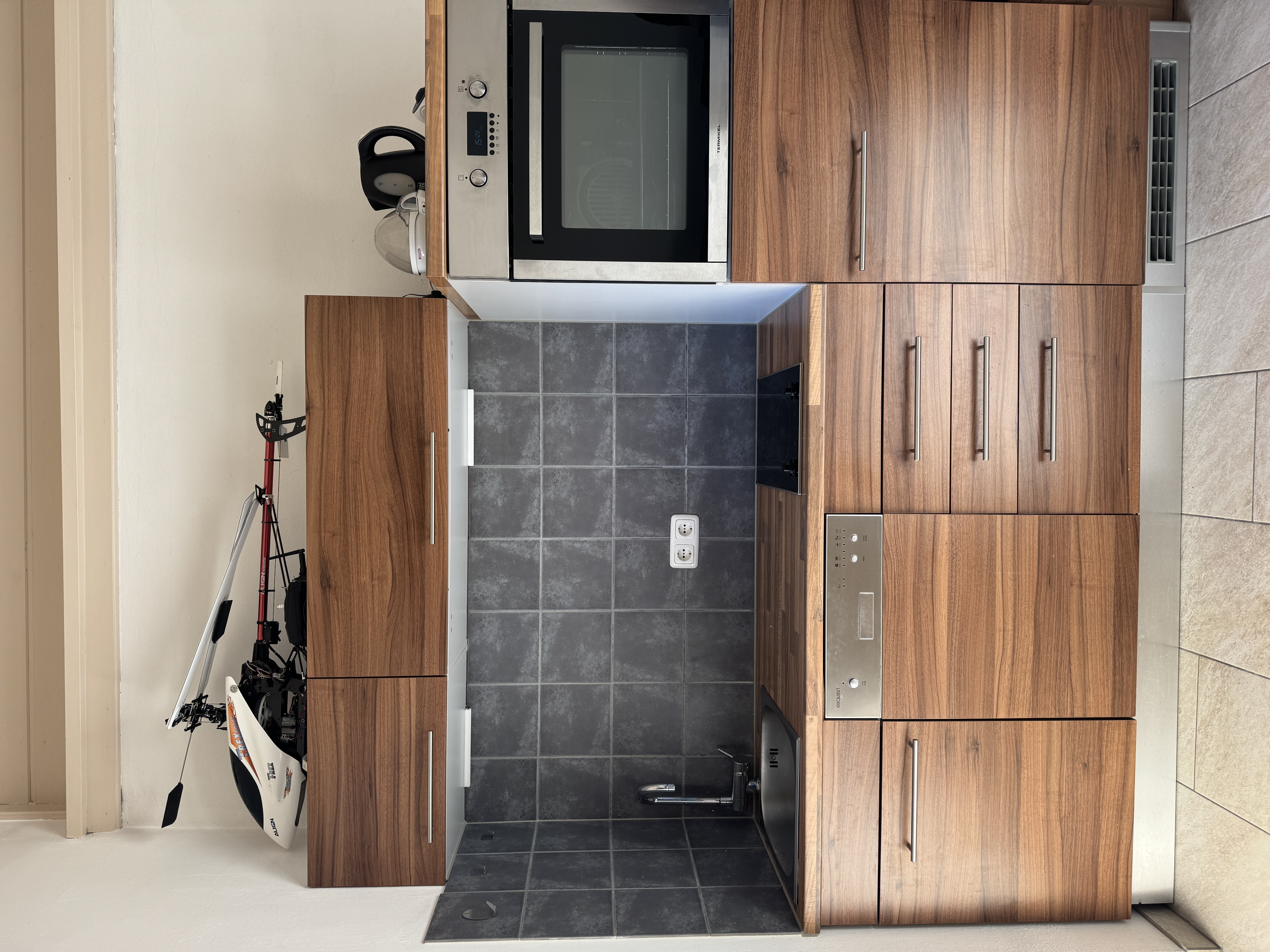 Die Wohnung wird vollständig eingerichtet übergeben und verfügt über eine Einbauküche sowie Fußbodenheizung (Ölheizung). Ein großzügiges Kellerabteil und zwei zugehörige Parkplätze bieten zusätzlichen Mehrwert – insbesondere in dieser Lage. Die Einheit befindet sich im ersten Stock eines einstöckigen Gebäudes und eignet sich optimal für Singles oder Paare mit Anspruch an eine gut strukturierte Wohnfläche.
