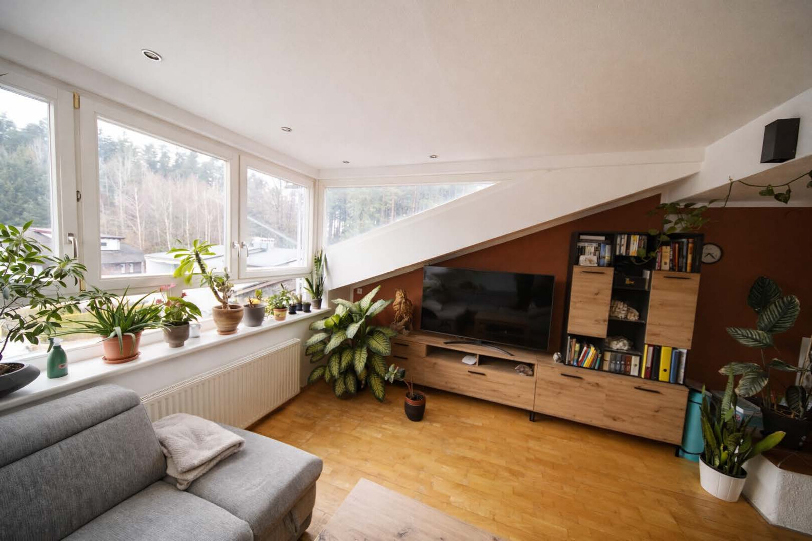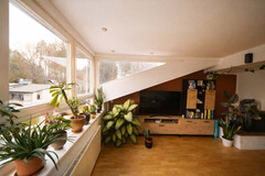 Die Wohnung befindet sich im 1. Obergeschoss (Dachgeschoss) eines gepflegten Wohnhauses ohne Lift und überzeugt durch ihre helle, freundliche Wohnatmosphäre. Dachschrägen verleihen den Räumen Charakter und Gemütlichkeit, während großzügige Fensterflächen für viel Tageslicht sorgen.