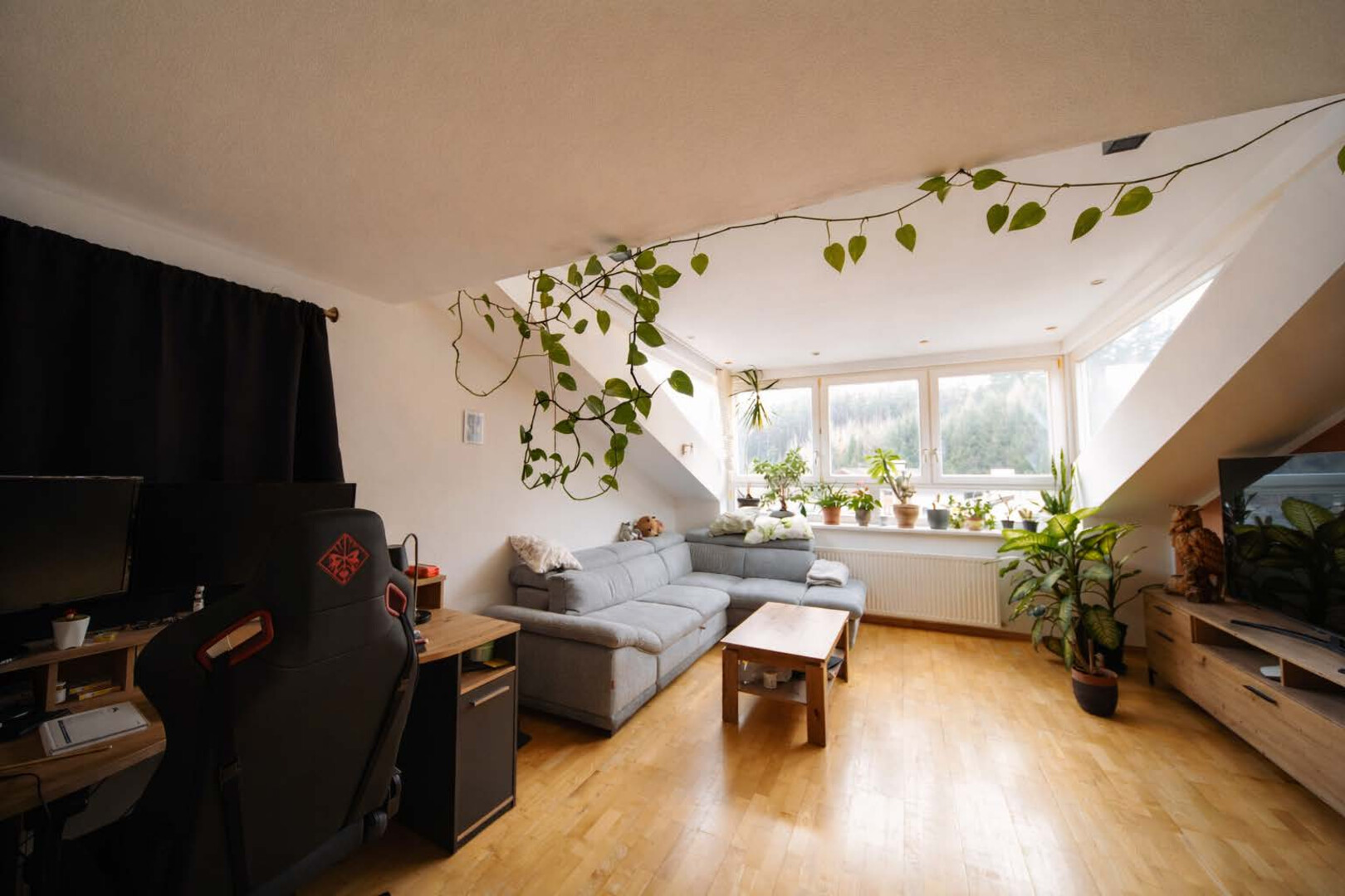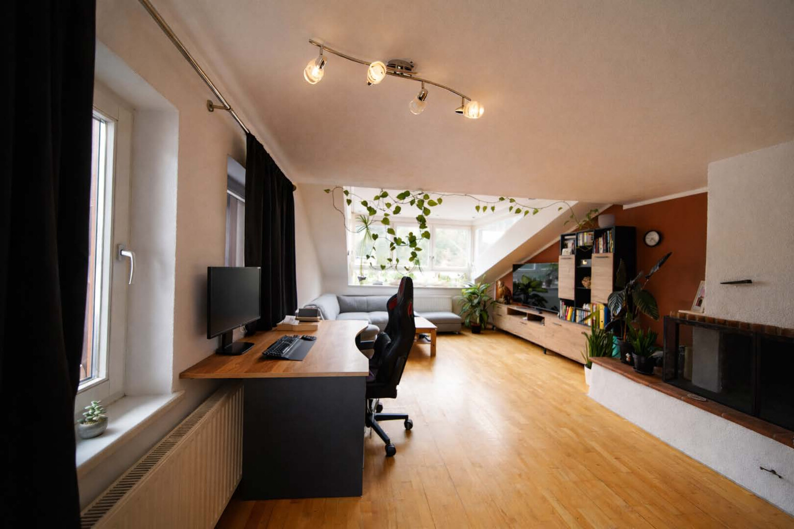 - ein weiteres abgetrenntes Zimmer welches vielseitig nutzbar ist und sich zum Beispiel perfekt als Büro eignet (inklusive verstecktem Abstellraum-Dachraum)
