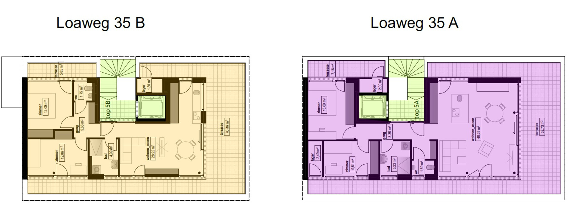 Die Wohnungen bieten je nach Lage entweder einen großzügigen Garten mit einladender Terrasse oder einen sonnigen Balkon. Ein Lift verbindet alle Ebenen und sorgt für ein komfortables Wohngefühl. Ein Vorteil sind die direkt an die einzelnen Wohnungen angrenzenden Lagerräume, die zusätzlichen Stauraum bieten und den Alltag spürbar erleichtern.