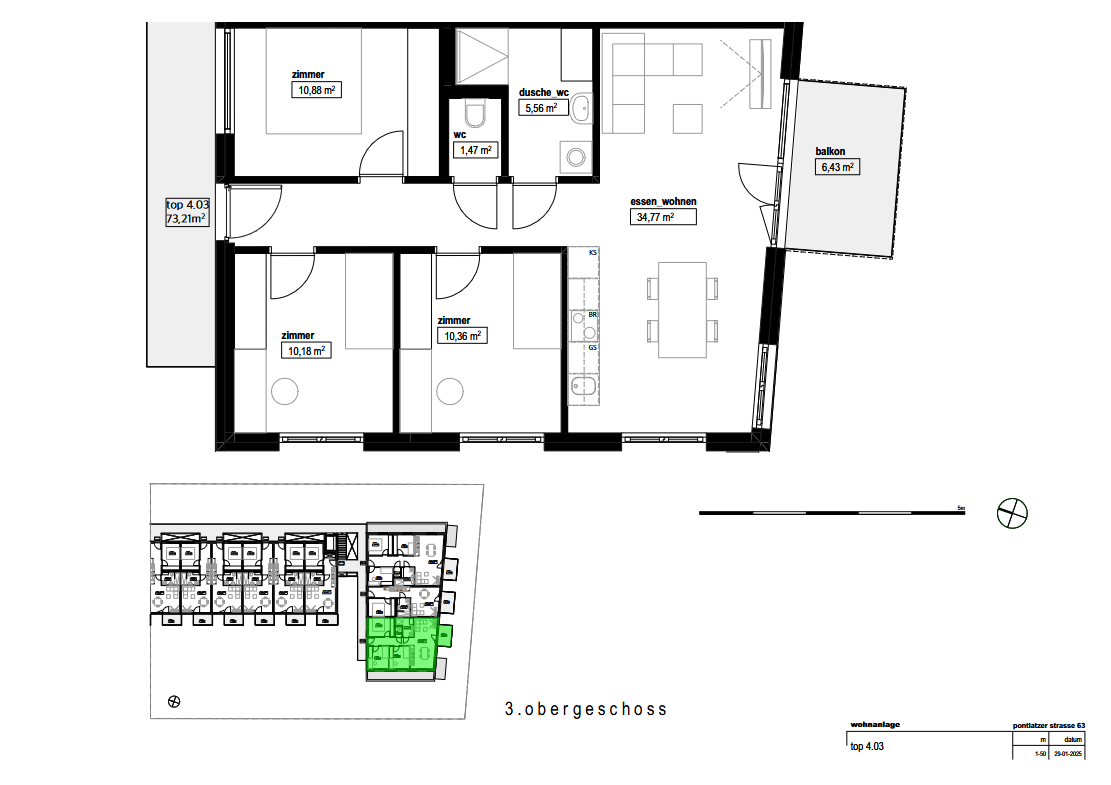 Die Wohnung 4.03 befindet sich im 3.Obergeschoß/Dachgeschoß und besticht durch einen hervorragenden Grundriss.