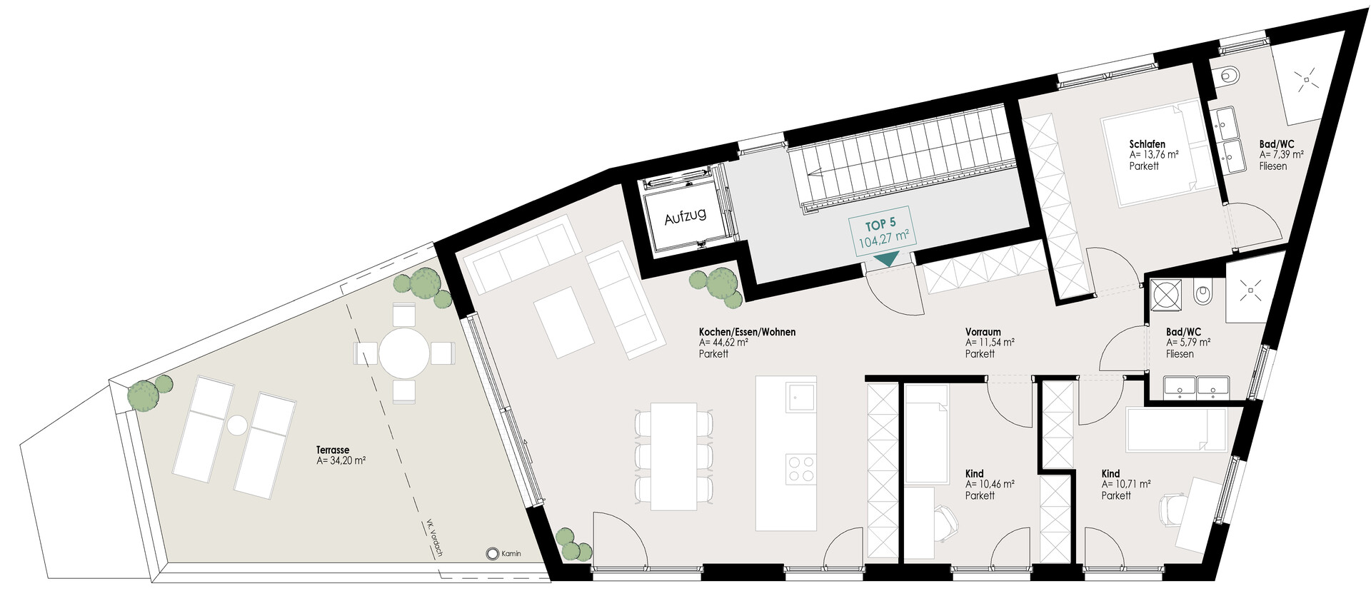 Die Wohnung besticht durch ihre absolut ruhige Lage, sowie eine großzügige Dachterrasse mit Süd/West Orientierung.