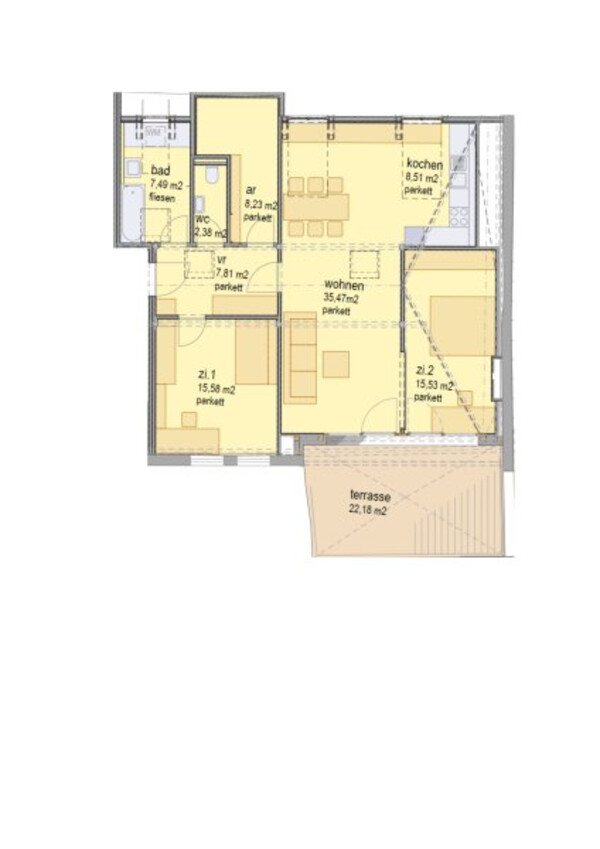 Die Beheizung erfolgt zentral. Zusätzlich steht im Haus ein allgemeiner Fahrradraum zur Verfügung.