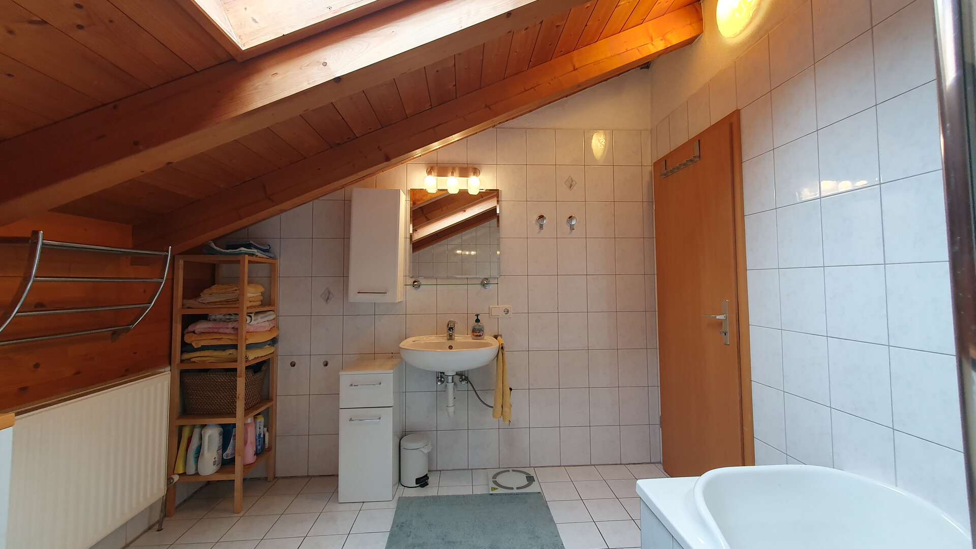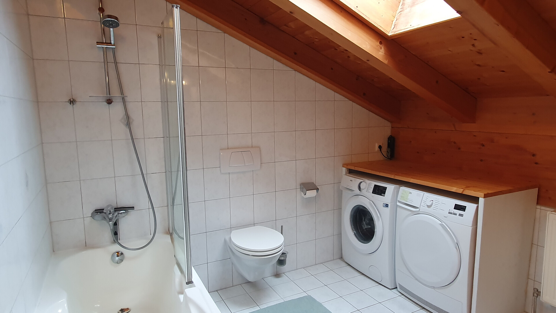 Zwei Badezimmer stehen zur Verfügung - davon eines sehr geräumig (mit Wanne, WC und Platz für Waschmaschine und Trockner) und ein Gäste WC.