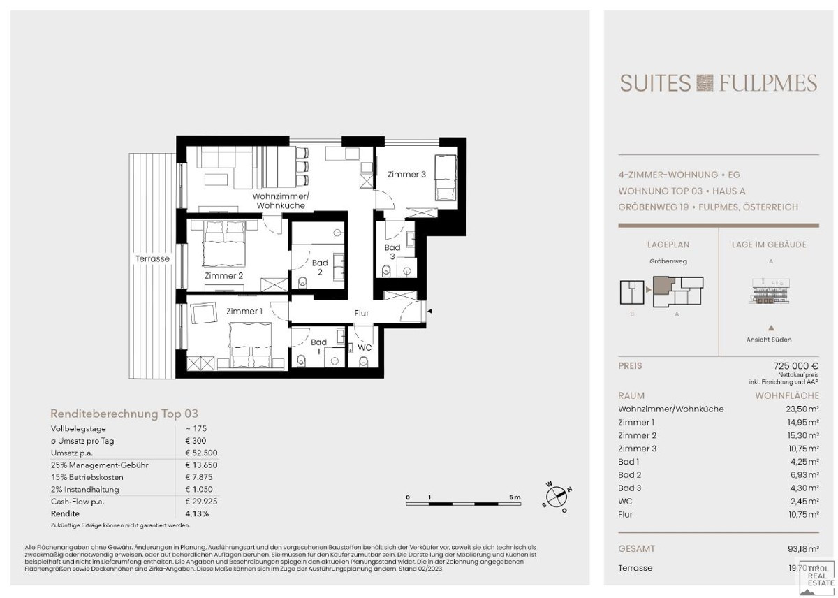 Das Top 3 erstreckt sich auf 93,18 m² und liegt im Erdgeschoss.