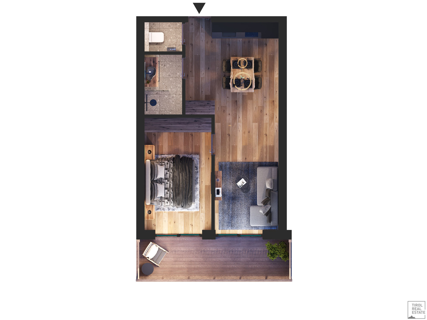 Das Apartment verfügt über ein Schlafzimmer, das Komfort und Privatsphäre bietet. Die rustikalen Holzvertäfelungen an den Wänden verleihen dem Raum eine herzliche Wärme und erinnern an die umliegenden Wälder, die die Region Ellmau so besonders machen. In den Apartments strahlt ausnahmslos jeder Raum die perfekte Balance zwischen Wärme und Coolness, nostalgischem Charme und moderner Eleganz sowie Funktionalität und Wohnlichkeit aus. Bei der Gestaltung wurde größter Wert auf hochwertige Materialien gelegt, von großformatiger Keramik bis zu Echtholzdielen und Altholzwänden.
