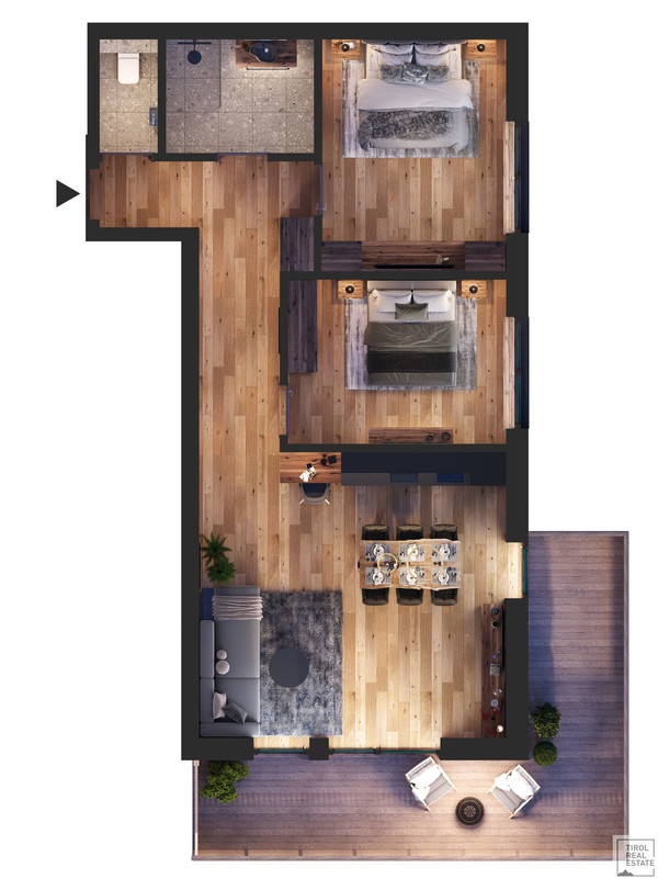 Das Apartment punktet mit zwei charmanten Schlafzimmern, die ausreichend Komfort und Privatsphäre bieten. Die rustikalen Holzvertäfelungen an den Wänden verleihen dem Raum eine herzliche Wärme - eine Hommage an die umliegenden Wälder, die die Region Ellmau so besonders machen. In den Apartments strahlt ausnahmslos jeder Raum die perfekte Balance zwischen nostalgischem Charme und moderner Eleganz, sowie Funktionalität und Wohnlichkeit aus. Bei der Gestaltung wurde größter Wert auf hochwertige Materialien gelegt, von großformatiger Keramik bis zu Echtholzdielen und Altholzwänden.