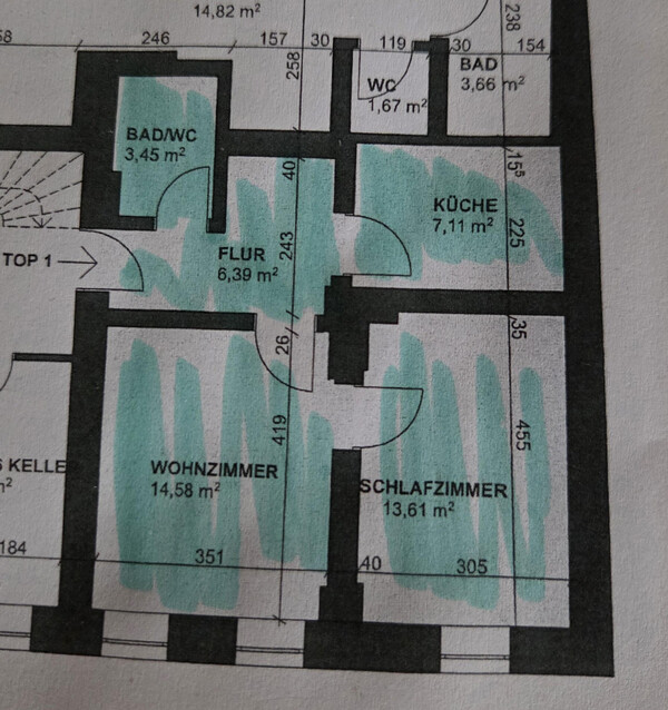 Die Wohnung wurde hochwertig saniert, der gesamte Boden komplett erneuert und die Elektrik auf den aktuellen Stand gebracht mit FI - Schutz.