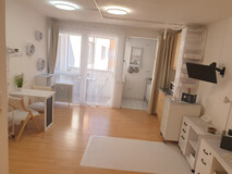 Komplettausstattung: Vollmöbliert inklusive Küche, Geschirr, Bildschirm und mehr – ein Sofortbezug ist ohne Aufwand möglich.