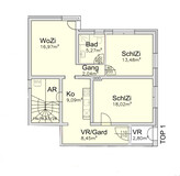Die Wohnfläche beträgt ca. 76 m² und überzeugt durch eine durchdachte und funktionale Raumaufteilung. Der südlich ausgerichtete Garten umfasst ca. 45 m² und bietet ein beeindruckendes Bergpanorama. Zusätzlich steht eine ca. 17,5 m² große Terrasse in Südlage zur Verfügung, die ideale Voraussetzungen für sonnige Stunden im Freien schafft. Das Kellerabteil verfügt über eine Fläche von ca. 6 m² und ist bequem direkt von der Wohnung aus erreichbar. Vor dem Eingangsbereich befindet sich darüber hinaus eine zusätzliche Freifläche, die den privaten Charakter der Einheit weiter unterstreicht.