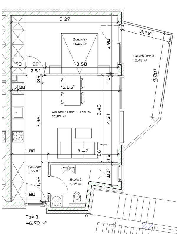 - Stahlbeton-Massivbauweise der tragenden Bauteile (Innenwände Gipskarton doppelt beplankt)