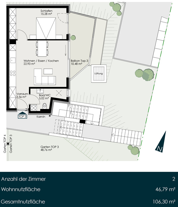 - Ausrichtung Balkon/Terrasse: Norden, Osten, Süden, Westen