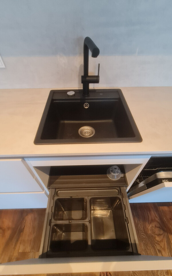 - ist mit einer hochwertigen Designerküche der Fa. Föger möbliert (großer Kühlschrank mit sep. Gefrierteil, Geschirrspüler, Spüle mit ausziehbarer Armatur, Müllauszug, Induktionskochfeld, Backofen, Hochschränke, Antirutschmatten in den Schubläden, Bestecklade, uvm.)