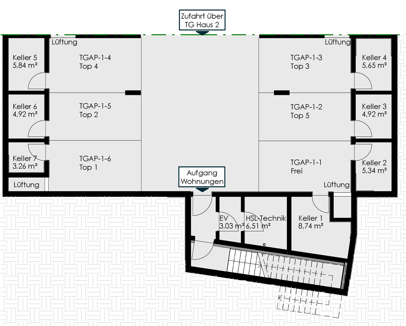 - optional 1 Tiefgaragenabstellplatz in geschlossener Tiefgarage (mit Funkfernbedienung) inklusive dahinterliegendem Kellerabteil.