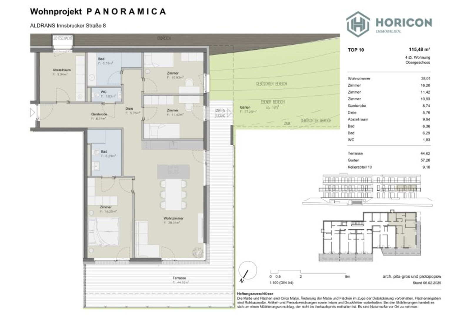 Diese luxuriöse 4-Zimmer-Wohnung Top W10 im 1. Obergeschoß bietet auf ca. 115 m² Wohnfläche alles, was Sie sich von einem modernen Zuhause wünschen – ergänzt durch eine atemberaubende Terrasse von über 44 m², die Ihnen einen unvergleichlichen Blick über Innsbruck bietet. Durch die West-Ausrichtung ist diese Einheit optimal situiert. Ein kleiner Gartenbereich - trotz Lage im OG - runden das Angebot ab.