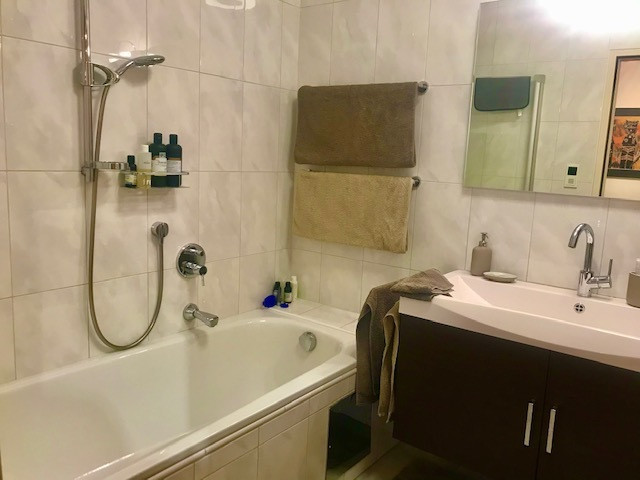Badezimmer mit Wanne und Duschwand aus Glas