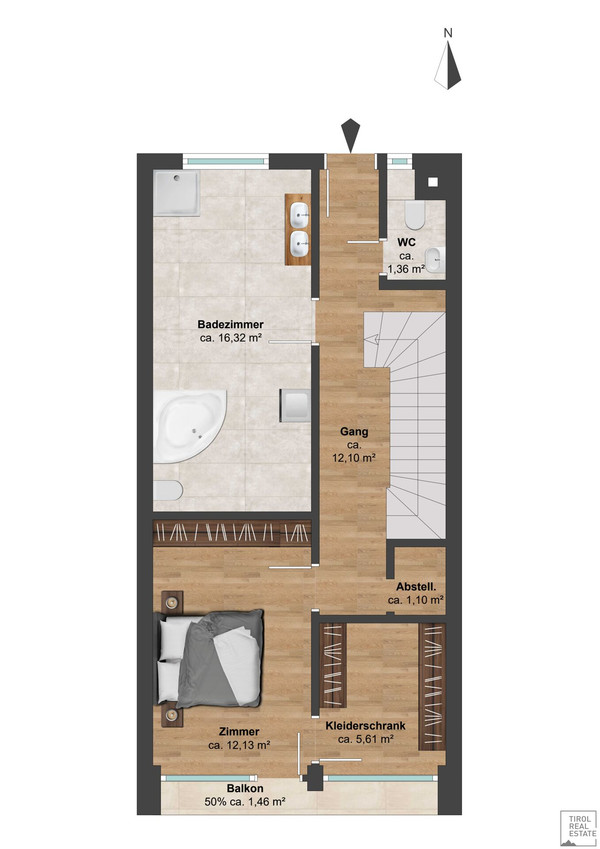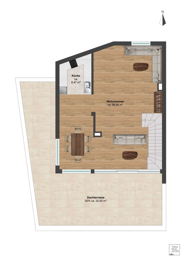 **Dachterrasse 51,86 m², ideal für entspannte Stunden im Freien**