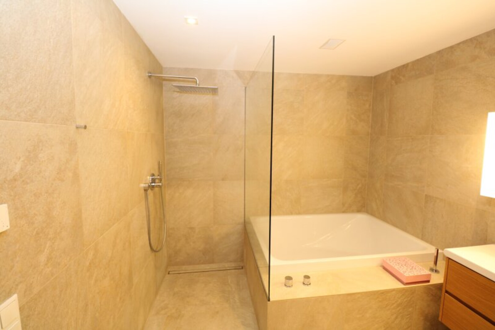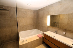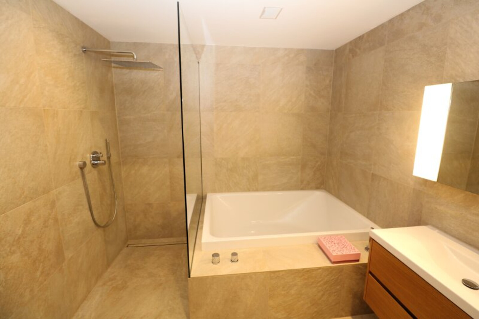 - Badezimmer: Hochwertig ausgestattetes Badezimmer mit großer, moderner Badewanne und einer begehbaren Dusche,
