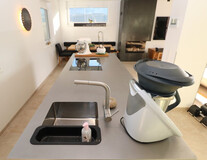 - Die Arbeitsplatte aus hochwertigem, warmgewalztem Edelstahl kombiniert Ästhetik mit Funktionalität und rundet die moderne Küche perfekt ab.
