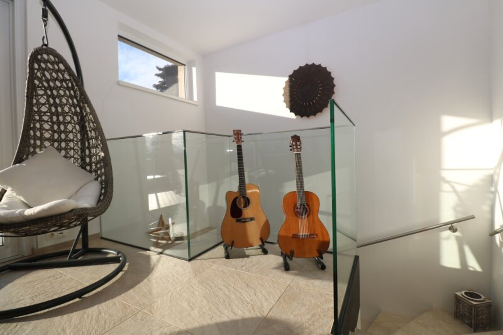 - Elektrische Rollläden im Obergeschoß und Raffstore-Rollos im Dachgeschoß, die bequem über eine App gesteuert werden können.