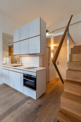 Der Wohnbereich ist klar strukturiert und hochwertig ausgestattet. Die maßgefertigte Küche fügt sich harmonisch in das moderne Gesamtkonzept ein. Warme Holzelemente, helle Fronten und ein stimmiges Lichtkonzept verleihen dem Raum eine zeitlose, ruhige Atmosphäre.