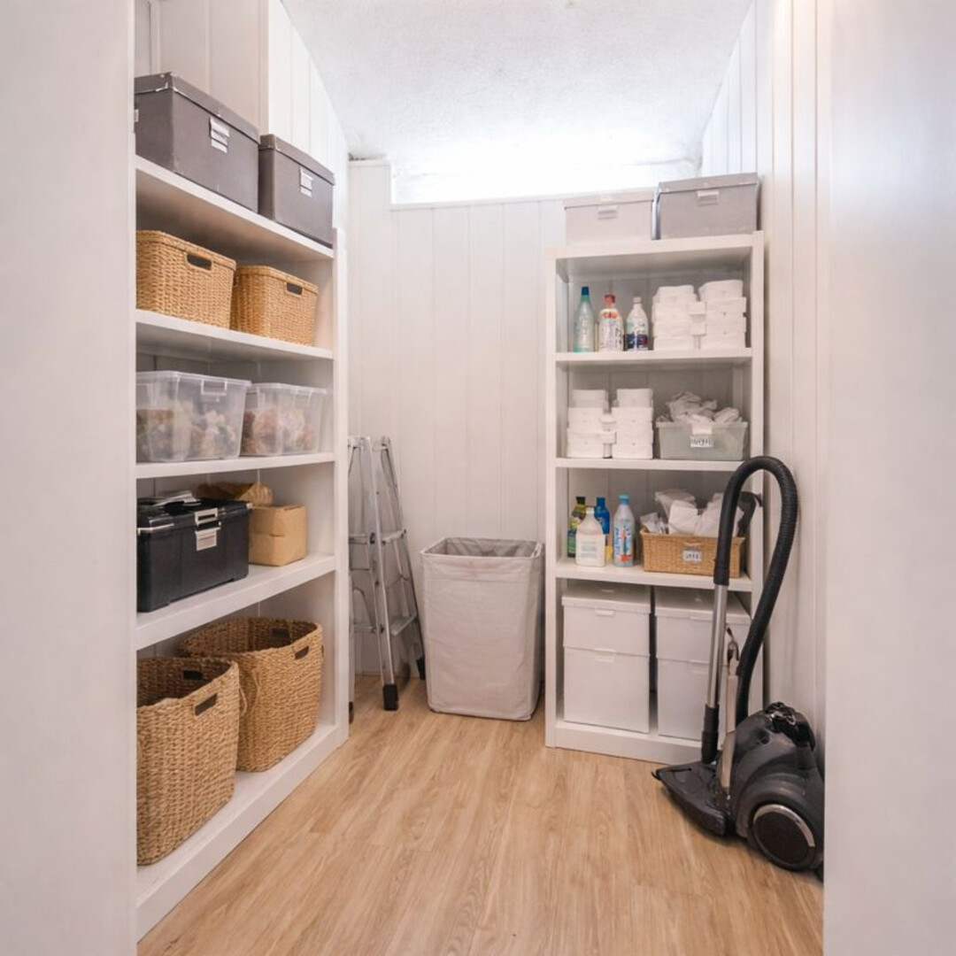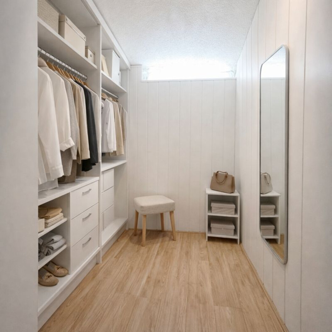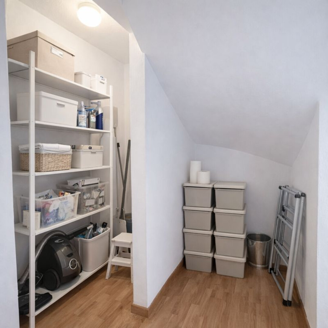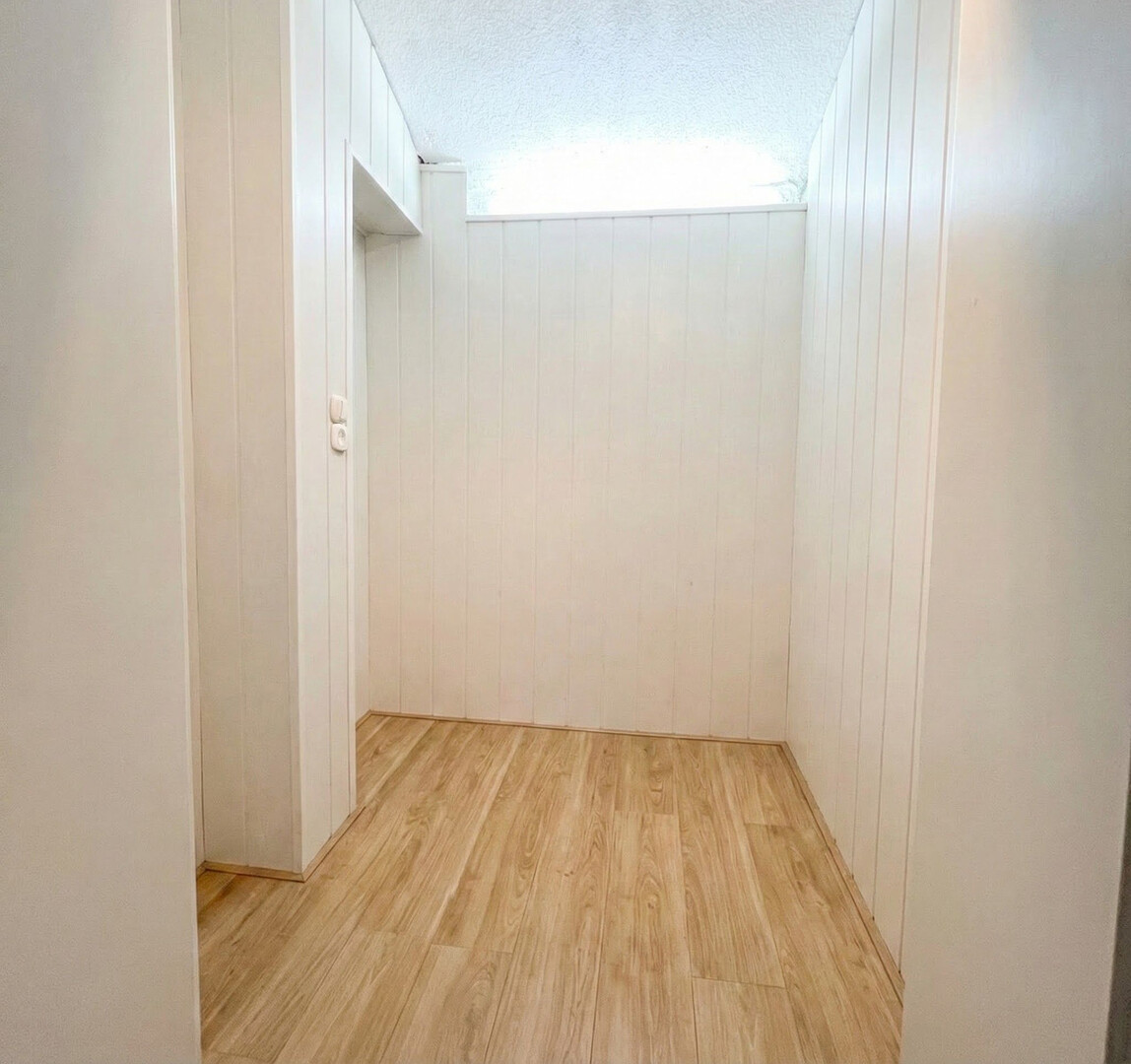 Flexibler Zusatzraum mit Holzboden, ideal als Schrankraum, Stauraum oder Lager.