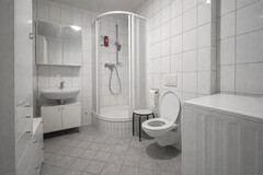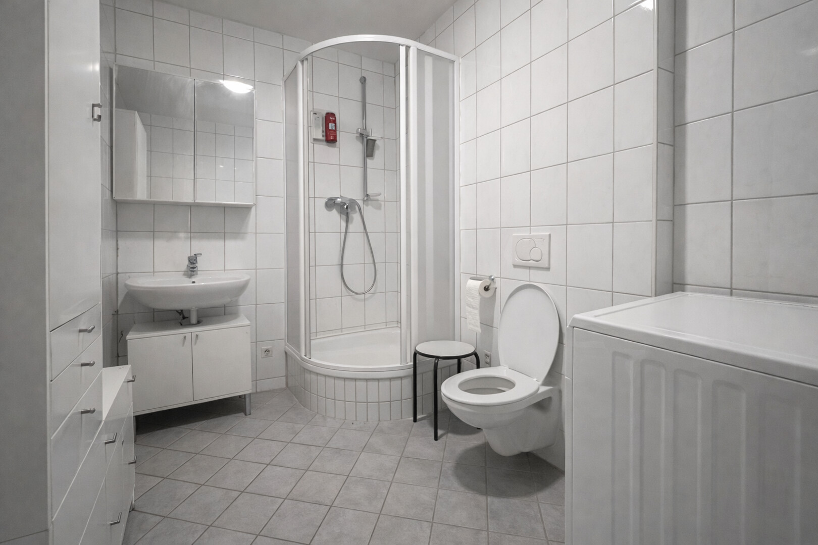 Großzügig und hochwertig ausgeführt, mit Fliesenboden.