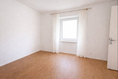 Freundlich und ruhig, Holzboden/Parkett. Kunststofffenster (Doppelverglasung) mit manuell bedienbarer innenliegender Jalousie.