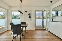 Die traumhaften Wohnräume erfüllen alle Wünsche. Der Blick auf die majestätische Alpenkulisse und das luxuriöse Bad, lässt Ihr Herz höher schlagen. Das Extra Plus: Der heimelige Kamin.