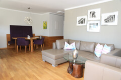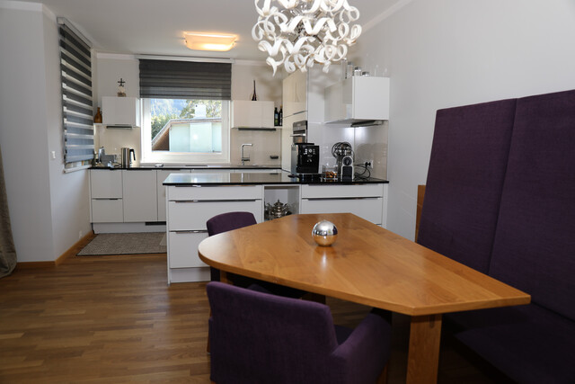 Der helle Wohnbereich wird ergänzt durch eine moderne Designerküche, ein modernes Badezimmer mit separater Toilette, ein exklusives Schlafzimmer sowie ein weiteres Kinder- oder Gästezimmer. Die süd- und ostseitige, große Terrasse bietet eine unverbaubare Aussicht auf die umliegende Bergwelt.