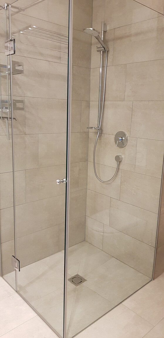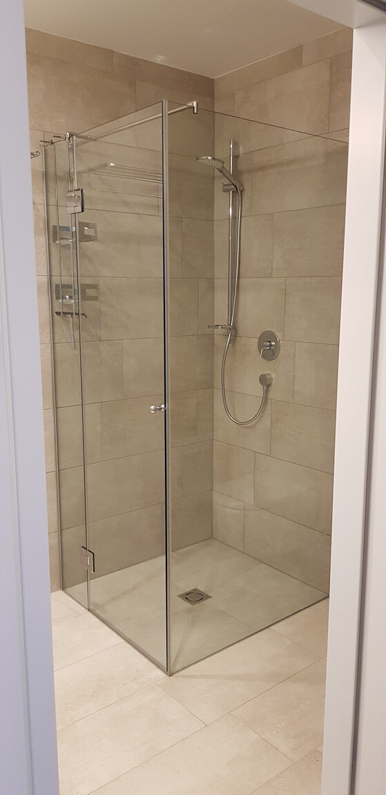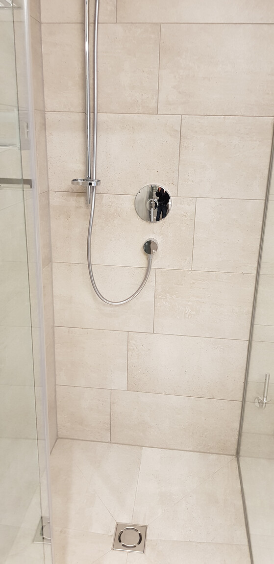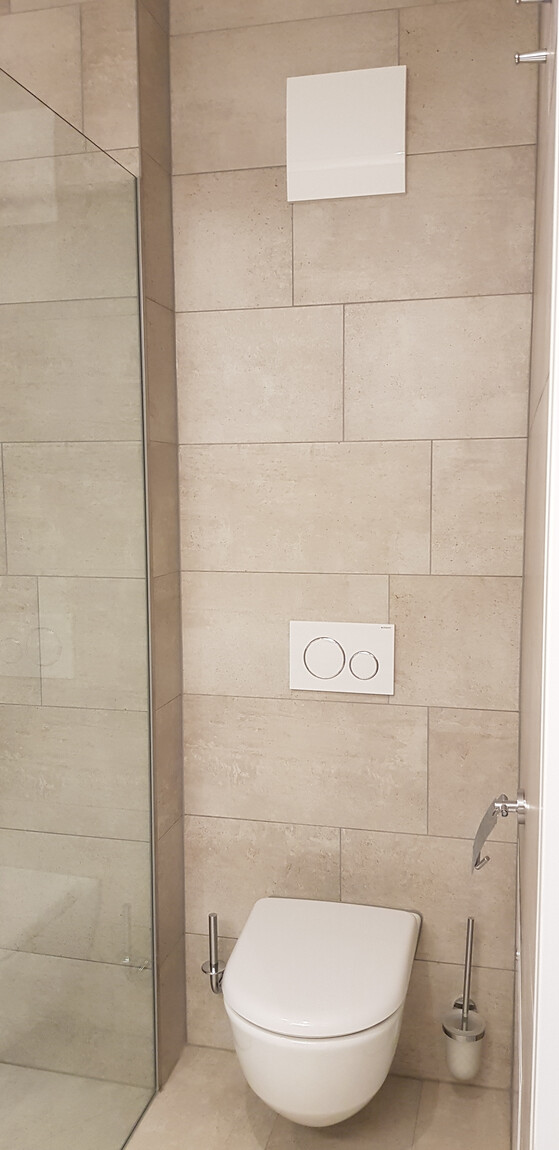 - Bad/WC mit bodenbündiger Dusche und Duschabtrennung (Waschbecken mit Schubladenauszügen sowie alle Badaccessoires wurden eingebaut)