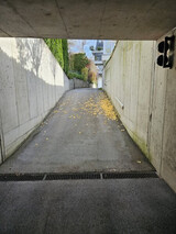 Die Erschließung der Häuser A und B erfolgt über einen gemeinsamen, geschlossenen Stiegenaufgang mit Personenlift, der eine direkte Verbindung von der Tiefgarage in das jeweilige Wohnungsgeschoss ermöglicht. Die Wohnungen in Haus C verfügen über eigene Zugänge über den Botenthalweg. Die Zufahrt zu den Gebäuden erfolgt über den Leonhardweg (öffentliches Gut) zu den PKW-Stellplätzen im Freien (5 Besucherparkplätze) sowie über den Botenthalweg (öffentliches Gut) mit anschließendem Servitutsweg zur Tiefgarage.
