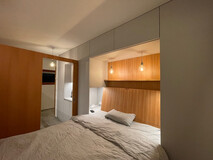 Schlafen: Doppelbett mit Matratzen und Matratzenschoner; viel Stauraum unter, neben und vor dem Bett.