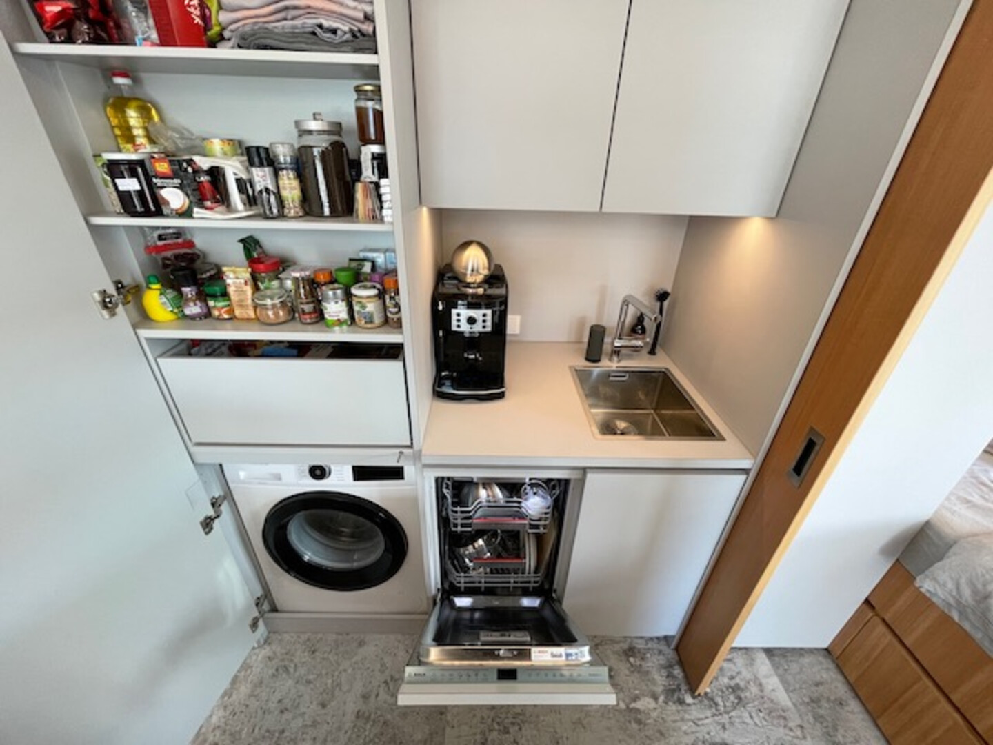 Küchengeräte: Spülmaschine Bosch; Elektroherd mit Backrohr von Siemens; Kühl-Gefrierkombination von Siemens iQ500; Waschmaschine Siemens iQ500; Kaffeevollautomat DeLonghi...