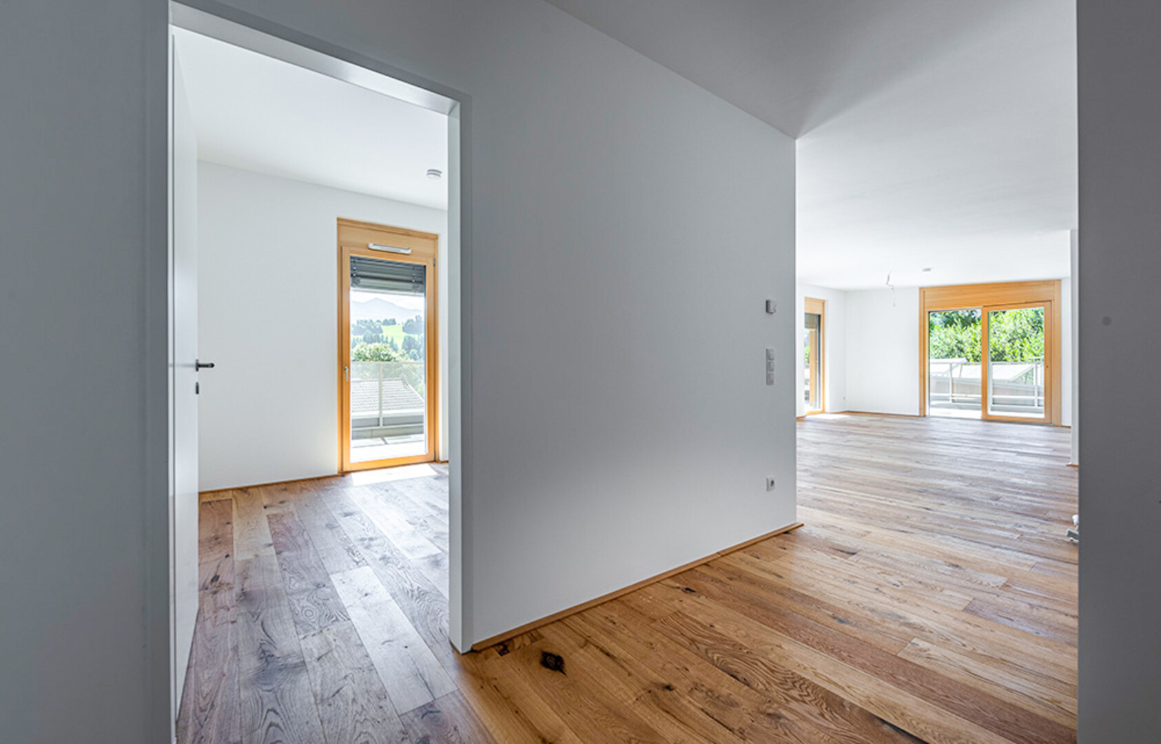 Die verfügbaren 3-Zimmer Wohnungen und die Penthouse Wohnung mit 4 Zimmern überzeugen mit großzügigen Grundrissen, lichtdurchfluteten Räumen und einer hochwertigen Premium-Ausstattung – von edlen Böden über modernes Feinsteinzeug bis hin zu stilvollen Bädern. Dank ihrer Lage im Dachgeschoss genießen Sie nicht nur Privatsphäre, sondern auch den freien Blick auf die umliegende Bergwelt. Durch die Lage am Waldrand und in einer Sackgasse ist außerdem eine idyllische Ruhe garantiert.