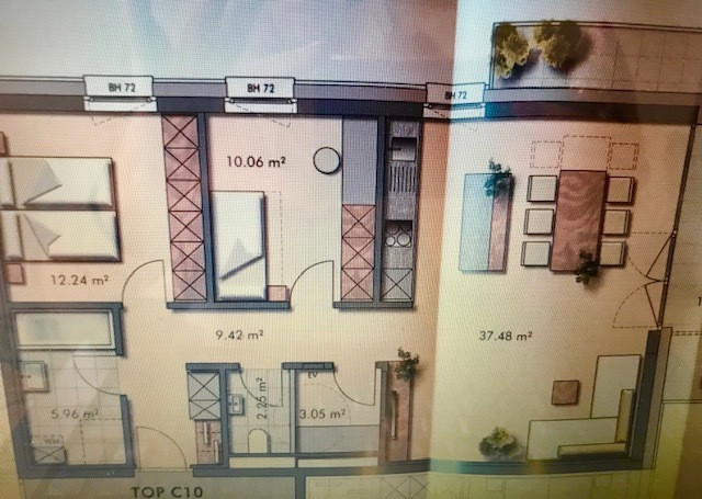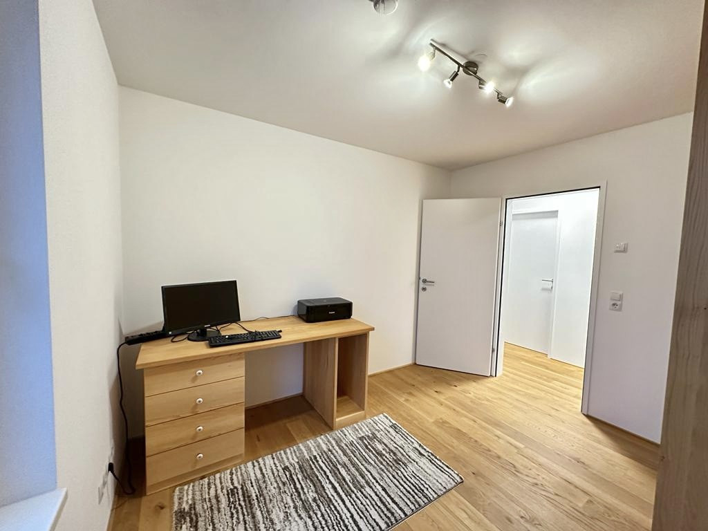 Architektonisch sehr durchdacht und modern konzipiert, bietet die Wohnung einen Eingangsbereich, einen Abstellraum mit zentraler Lüftung und Anschlussmöglichkeiten für die Waschmaschine und den Trockner, ein Hauptschlafzimmer mit Handkurbel Jalousie, ein Kinderzimmer/Arbeitszimmer mit Handkurbel Jalousie, Badezimmer mit Badewanne und Dusche und zentraler Lüftung, separates WC mit Lüftung, einen offenen Wohnraum mit schicker integrierter Küche und einem großen bodentiefen Fenster mit elektrischer Jalousie sowie einer hochwertigen Glas-Schiebetüre.