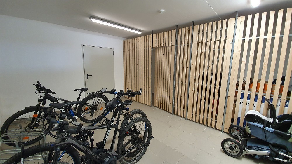 Im Untergeschoss: rd. 5 m² große Kellerabteile mit Bodenfliesen, Einzelbeleuchtung und Steckdose, breite Gangbereiche, riesiger Fahrradraum, Waschküche mit Waschmaschinen-Einzelplatz für jede Wohnung, großzügiger Müllraum.