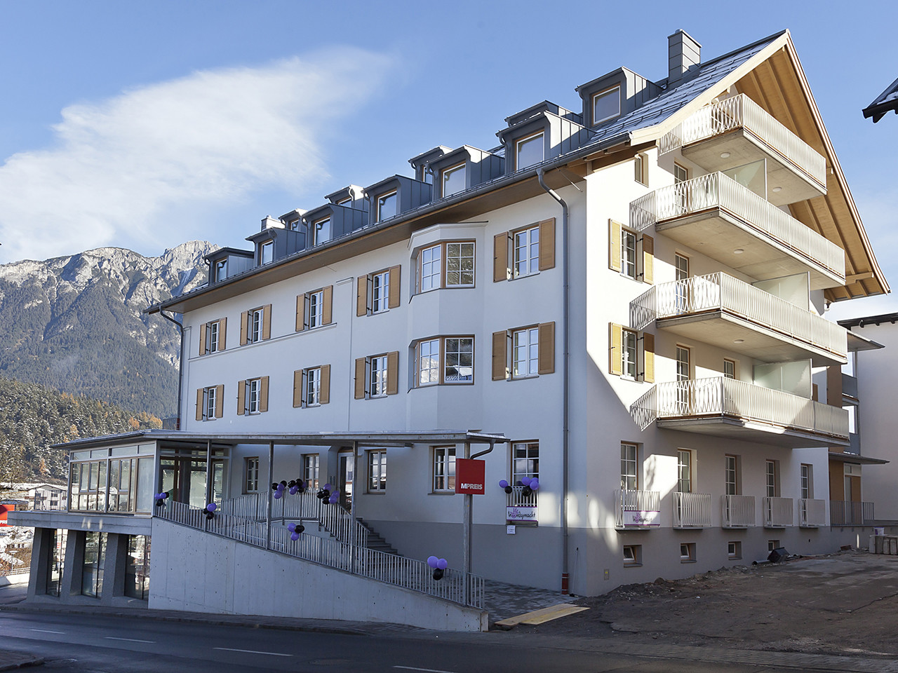 Wo einst die „Alte Post“ das Ortsbild von Arzl prägte, steht heute ein modernes Wohn- und Geschäftsgebäude, das die Tradition seines Vorgängers bewahrt und zugleich kraftvoll ins Heute trägt.