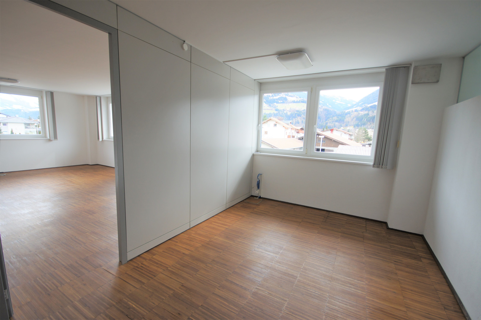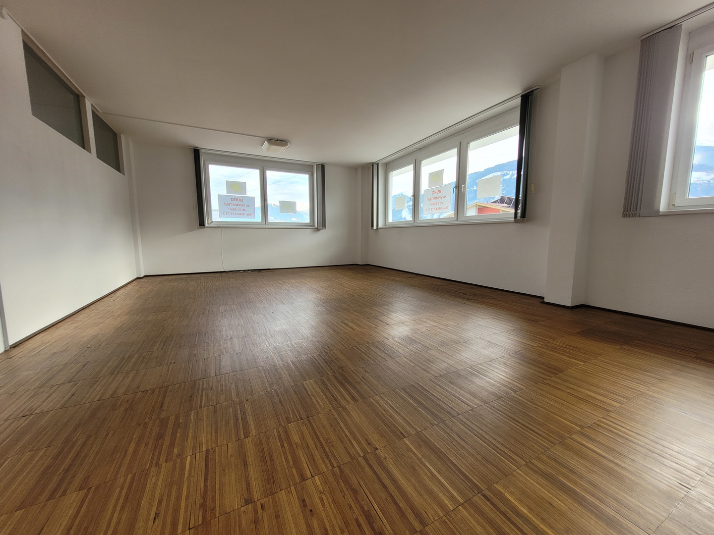 Die Bürofläche besticht durch hochwertige Holzböden. Bodensteckdosen sind geschickt in die Böden integriert, was eine flexible Nutzung und Einrichtung des Büros ermöglichten.