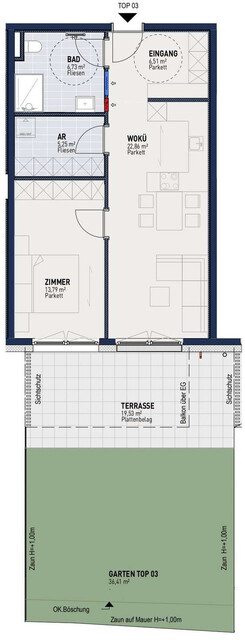 In familiärer Umgebung und verkehrsberuhigter Lage entstehen 12 Neubauwohnungen im Projekt s'Angerle. Die Wohnungsgrößen variieren und bieten ca. 49 m² bis 125 m² Wohnfläche. Jede Wohnung verfügt über einen großzügigen Außenbereich und ist sonnenfreundlich ausgerichtet. Im Untergeschoss sind 20 Kfz-Abstellplätze vorgesehen und ebenso Technik- und Kellerräumlichkeiten untergebracht. Ein Gemeinschaftsbereich mit Spielplatz und Sitzgelegenheit wird im Zugangsbereich geschaffen. Weitere Details zu diesem Projekt finden Sie unter: https://projekte.riederbau.at/