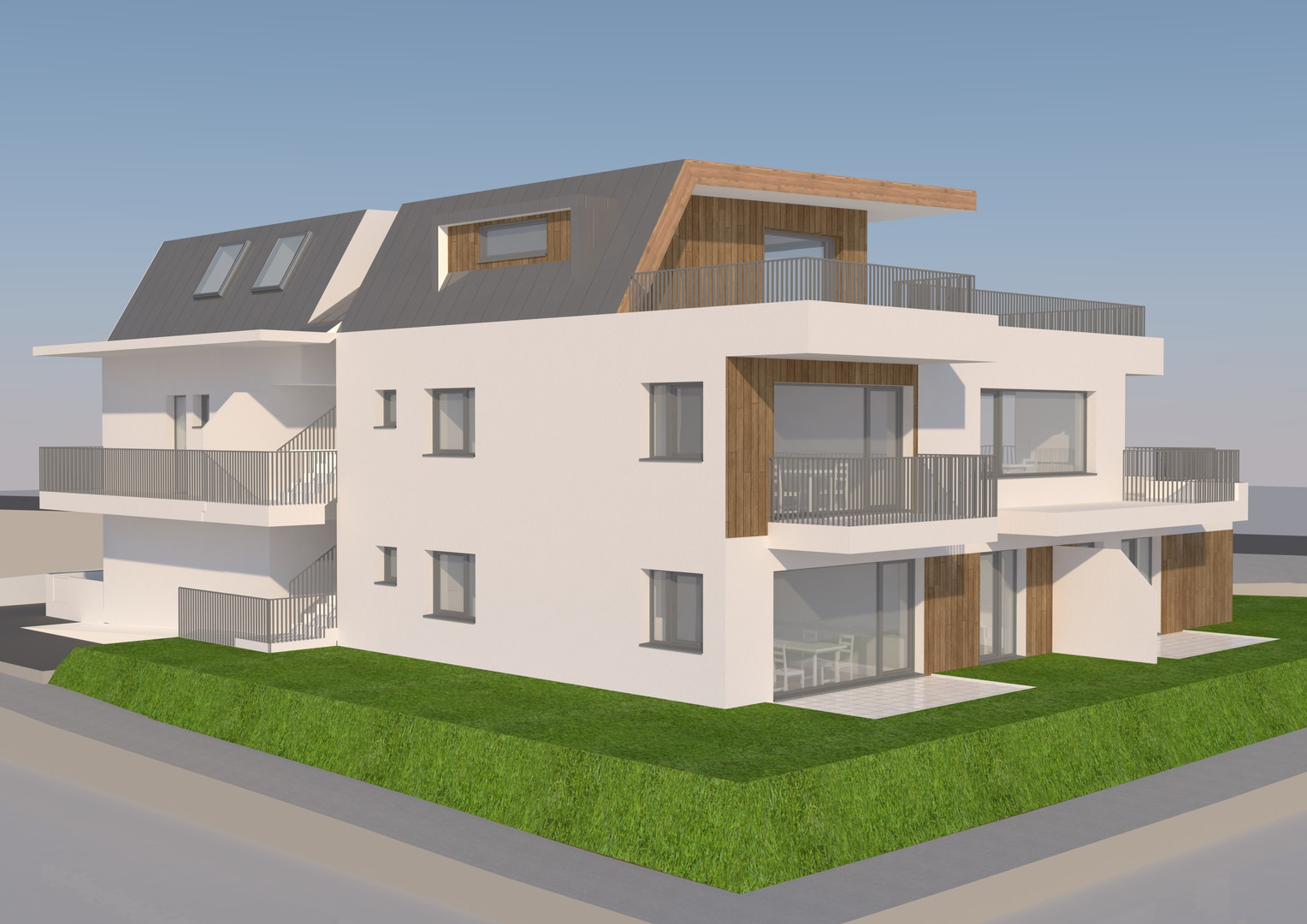 Im westlichen Mittelgebirge am Ortsende von Birgitz errichtet die Fa. TIMBER & STONE HOMES Wohnbau GmbH, in sonnenverwöhnter Lage eine elegante Kleinwohnanlage mit lediglich 6 Einheiten.