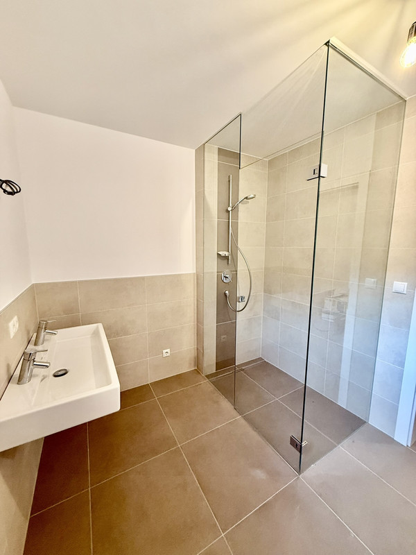 - Großformatige Bodenfliesen 60x60 cm in Sanitär- und Nebenräumen