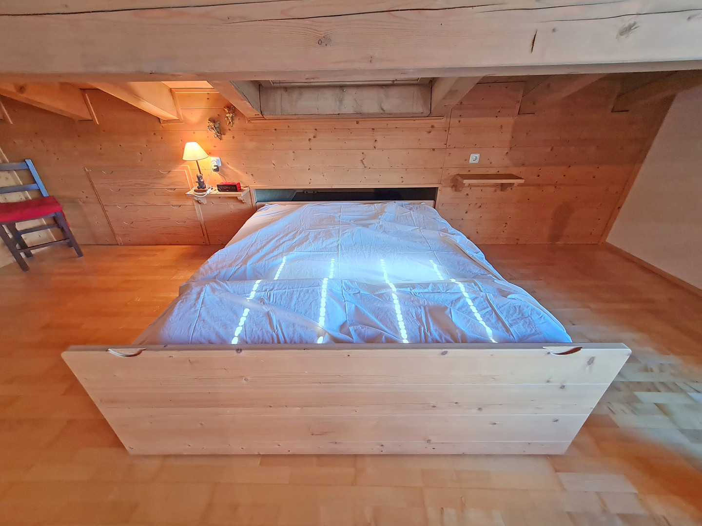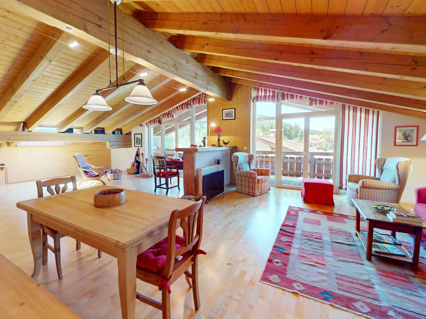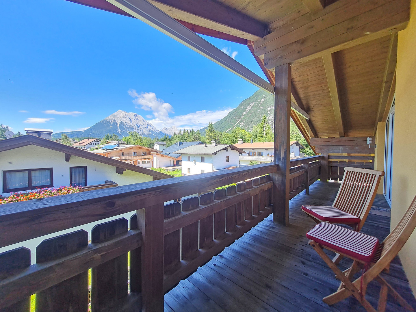 Diese bezaubernde, ca. 98 m² große Dachgeschosswohnung in ruhiger Wohnlage von Weidach, verbindet alpinen Charme mit modernem Komfort. Das erst 2012/13 fertigstellte Apartment besticht insbesondere durch den großzügigen Wohnraum zur Südseite, als auch durch die markante Architektur mit freiliegenden Holzbalken und Dachschrägen, die eine warme und einladende Atmosphäre schaffen. Das Herzstück des Apartments bildet der offene Wohnbereich, der Wohnen, Essen und Schlafen unter einem Dach vereint. Die Inneneinrichtung wurde fachmännisch von Tischler gestaltet und die Dachschrägen wurden in cleverer Weise genutzt, um untertags die ausziehbaren Doppelbetten auf beiden Seiten im Dachraum fast nahtlos verschwinden zu lassen. Große Fenster durchfluten den Raum mit Tageslicht und bieten Zugang zum ca. 14 m² großen Balkon mit malerischem Blick auf die umliegende Berglandschaft und die Hohe Munde. Die gut ausgestattete Küche mit einer tiefen Arbeitsplatte aus dunklem Stein bietet auf kleinem Raum reichlich Arbeitsfläche. Moderne Geräte, darunter ein eingebauter SMEG Backofen, ein eingebauter Geschirrspüler samt Kühl- und Küchenschrank auf der gegenüberliegenden Seite nutzen den Raum perfekt aus. Der angrenzende Ess- und Wohnbereich nahe am hochwertigen Montegrappa Schwedenofen mit Speckstein, lädt vor allem in den Wintermonaten zum gemütlichen Beisammensein ein. Die beiden Badezimmer sind mit weißen Fliesen und einer kontrastierenden blau gefliesten Verkleidung der Badewanne gestaltet. Eine Duschabtrennung aus Glas, ein Waschtisch, WC und Bidet und ein Fenster mit natürlichem Licht bieten unter der Dachschräge sowohl Charakter und gleichzeitig Funktionalität. In einem der Badezimmer ist ein Waschmaschinenanschluss mit dazugehöriger Maschine vorhanden. In der gesamten Wohnung nutzen Einbauschränke den Raum optimal aus und zu beiden Seiten hat man unter dem Dach jeweils noch einen Dachraum mit ca. 40 m² zur Verfügung. Die Wohnung wird bis auf persönliche Gegenstände und Malereien möbliert verkauft. Ein Abstellplatz im Carport und ein Kellerabteil mit 1,5 m² sind ebenfalls Teil des Verkaufes. Die harmonische Verbindung von traditionellem Alpenstil mit modernen Annehmlichkeiten macht dieses Apartment zu einem Wohlfühlort mit Persönlichkeit. Es handelt sich nicht um einen Freizeitwohnsitz, sondern um einen Hauptwohnsitz. Zögern Sie nicht, diese charmante Wohnung mit E&V zu besichtigen. Die Wohnung ist nach dem Notartermin sofort bezugsbereit!
